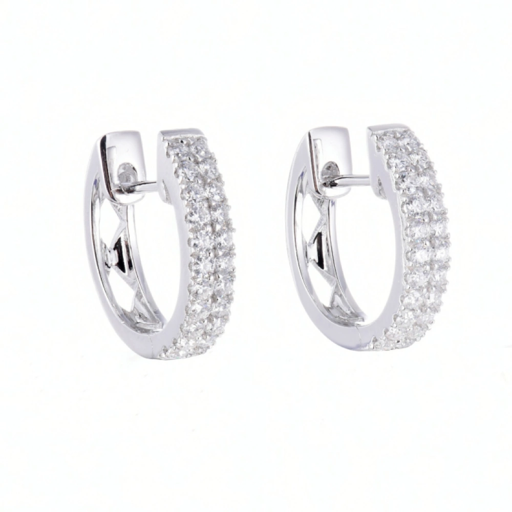 Crafted with a silver base paved in sparkling micro-diamonds, these crescent-shaped hoops blend delicate elegance with charm. Their luminous finish suits various styles, perfect for daily wear or intimate gatherings.